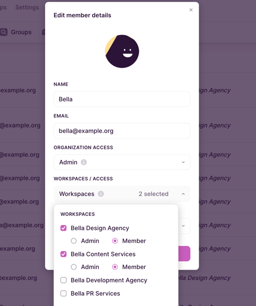 Groups are also helpful when new members join the team. You assign them to the relevant group instead of adding them to all the projects or workspaces individually.