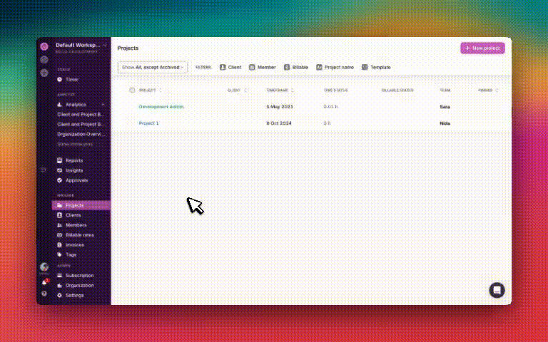 Project leaders can edit and manage all Projects and Clients in the workspace as well as access reports only for those projects they are members of, giving this role more access compared to the Project Manager role. Project Leads as admins with limited access.