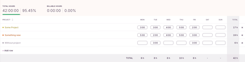 Note: This shortcut applies within a single project row. To enter time for a different project, click on the corresponding row and repeat the process.