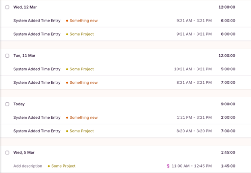 (Priority 2) The system will try to find entries with Time Entry Description - System Added Time Entry