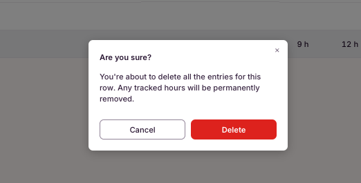 Upon clicking it, a confirmation will pop up. By pressing Delete here, all the associated time entries will be deleted.