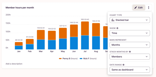 Filters can be added to the whole report or to each chart. Adding the filter to the whole report affects all charts at once. You can also apply rounding to the chart individually and enable advanced settings to the chart, such as:
