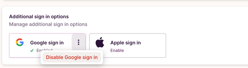 Use the three-dot control to disable Google/Apple login, as shown in the screenshot below