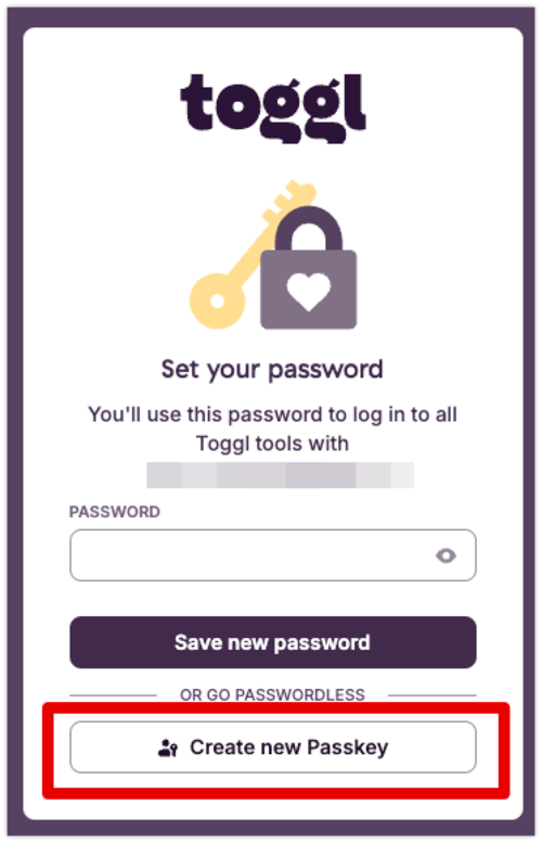 3. Instead of setting up a password, click Create new Passkey from the bottom, and follow the instructions that come up