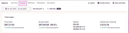 Get an in-depth look of the tracked time. Editing time entries is also possible from this report.