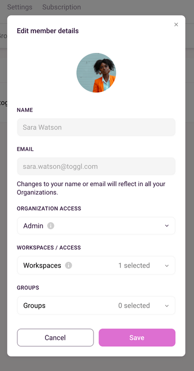 If they are members of multiple Organizations, you can only edit the details specific to your workspace – their access rights.