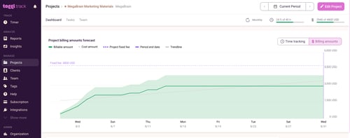 Set a fixed fee amount for projects and track your progress against it.