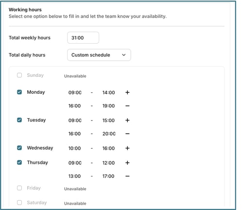 Total weekly hours: Set a total number of hours per week