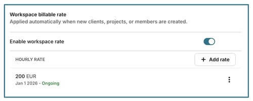 Set a default billable rate that is automatically applied when new clients, projects, or members are created in the workspace.