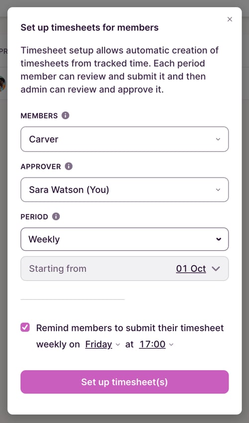 Once you're happy with your settings, click "Set up Timesheet(s)."