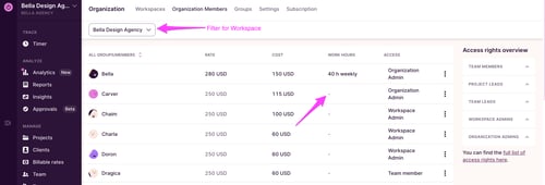 In order to make the most of Approvals, setup Work Hours for each user on the Organization > Members tab (after filtering for the chosen workspace).