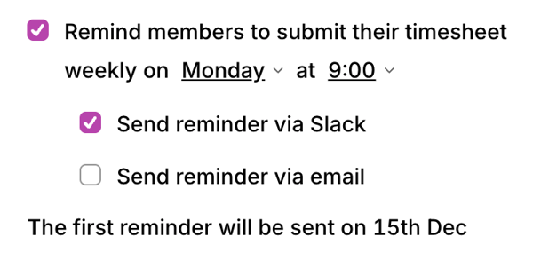 If your team members have connected to Slack, you can send them reminders to submit their timesheet: