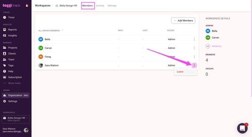 This article explains how you can delete or close an organization if you are the only user or have other members tracking time with you