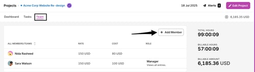 You can also edit Project members by opening the Project and navigating to the Team tab.