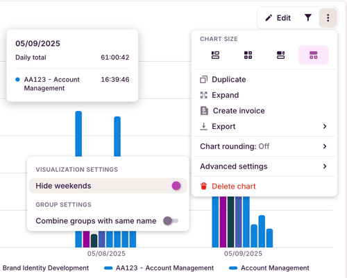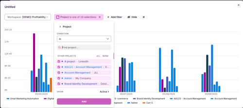 5. If you want it too look less crowded, you can filter by your 10 desired projects and hide weekend