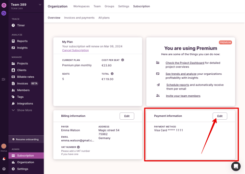 Find ‘Payment information’ on the bottom right and click ‘Edit’