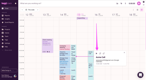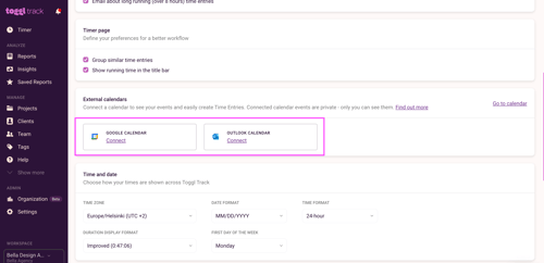 If you want Toggl to automatically convert your Google or Outlook calendar events into time entries, just enable the "Auto-track calendar events" setting. This feature serves as an excellent alternative to manually copying events. Here's how to enable it: