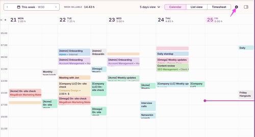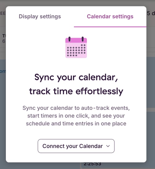 Integrate your external calendar into our Calendar view to auto-track your calendar events, or manually create or start time entries based on calendar events in two-clicks!