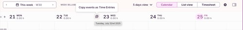 The option to bulk copy calendar events for an entire week has been removed as part of Toggl's Timer page updates. While this feature is no longer available, Toggl offers alternative solutions to help you manage your time entries effectively. You can still copy all time entries for a specific day: