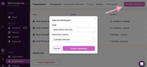 Note: Users on our enterprise pricing (contact Sales) will be able to add multiple workspaces under one Organization.