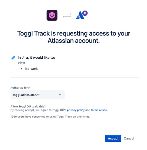 If you experience issues connecting to the Jira site, please check if Toggl Track has proper access to Jira or remove the authentication and set it up again.