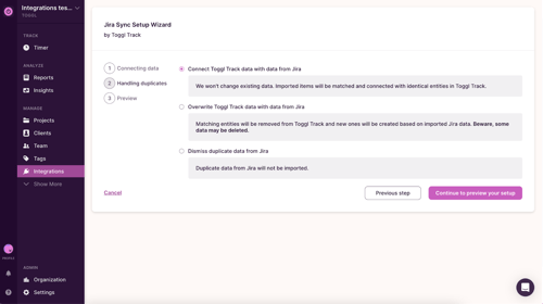 First, it’s important to note that the integration currently functions one way: you can only import your data from Jira to Track, and it’s currently not possible to export data from Track to Jira. However, if you would find this beneficial, please don’t hesitate to reach out so that our team knows to focus on it.