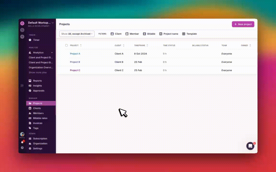 Assigning Clients to your projects will allow you to get an extra level of time tracking data categorization and make it easier to create reports by applying both the Project and the Client filter.