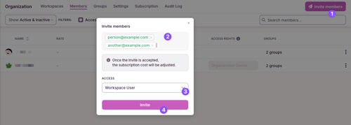 If you have the multi-workspace functionality enabled you'll also be prompted to choose which workspaces to invite them to, and which access to provide them with.