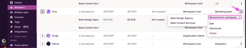 To edit an organization user's billable rate, visit the Members tab, and here, you can add in their billable rate and cost rate (Premium plans only) in the columns provided. If your Organization has multi-workspace setup, you can edit the rate for each workspace here by expanding the list.
