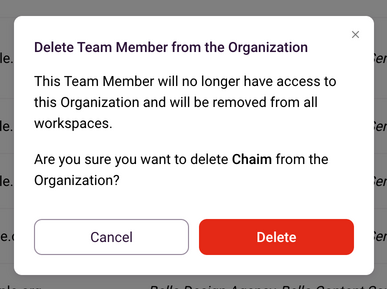If you still have questions about managing Organizations members, please contact our Support team by clicking on the purple chat icon in the bottom right corner of this page to start a chat.