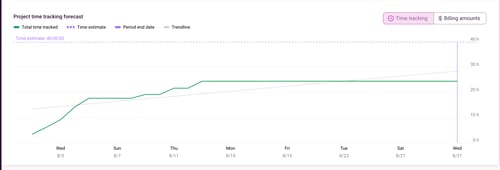 Trendline (gray): shows a prediction of billable amounts tracked in the future based on historical time tracking data for the project you are viewing