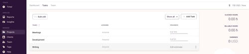 You can choose to enter an overall estimate for the whole project or enable Task-based estimates.