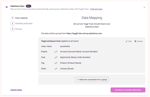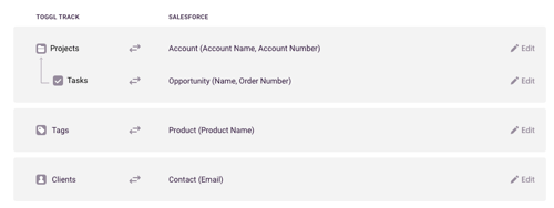 Toggl Track entities will be periodically auto-synced with configured Salesforce objects.