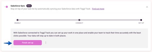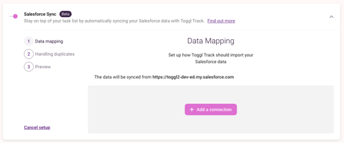 Sync your Salesforce data with your Toggl Track Workspace to measure time spent on Salesforce items.