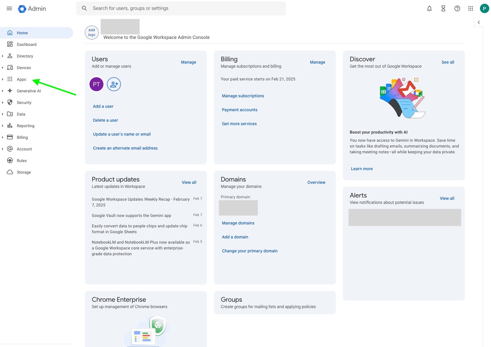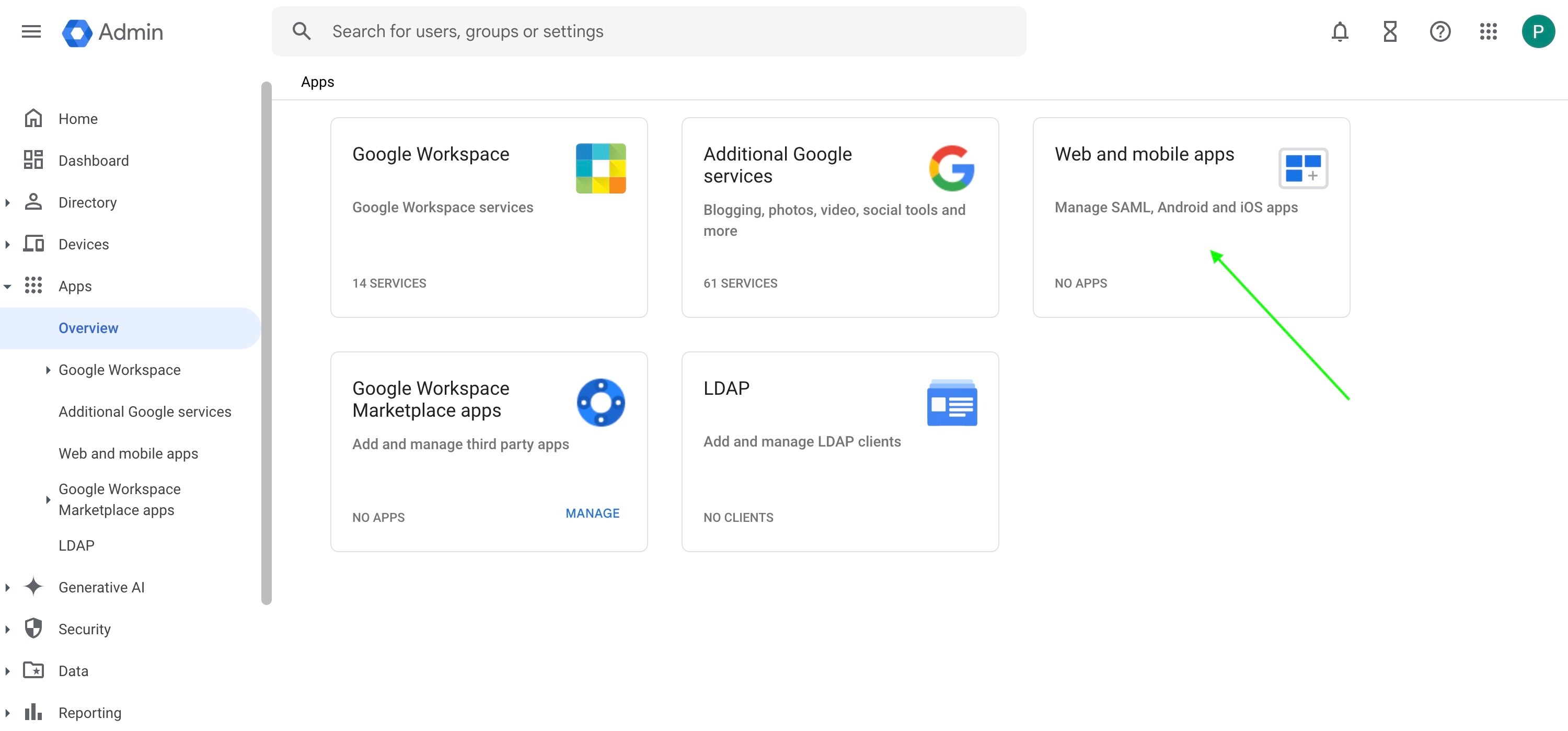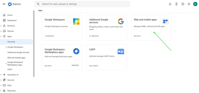 In the Google Workspace Admin select Apps: