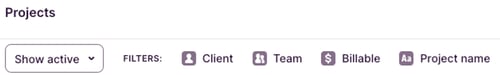 When team members track their time, they will see the project-client-task lists you have set for them to track their time against.