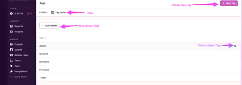 Add additional information to your time entries with Tags. Learn how to create and manage them.