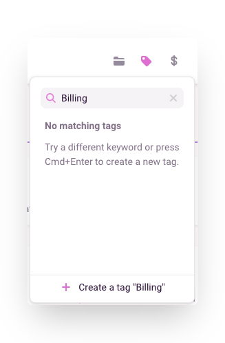 Press Cmd (Ctrl for PC) and Enter to create it. This new tag will also be applied to your current time entry.