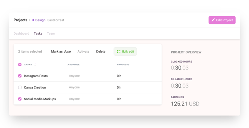 Tasks can be created in projects to help categorize time usage. Learn more about creating and managing them.