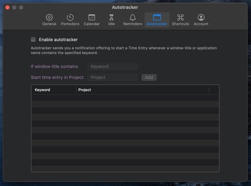 Setup keywords in autotracker to receive time tracking notifications for specific projects - as setup for each keyword. Autotracker is triggered based on the window title or application name.