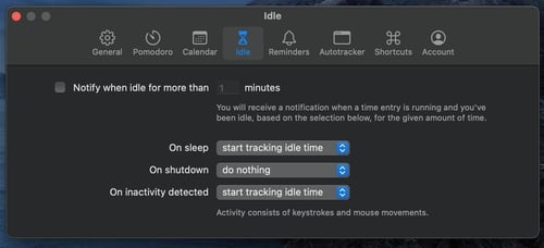 On inactivity detected: Do Nothing or Start Tracking Idle Time.