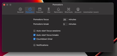 Auto-start focus breaks: When a focus session ends, the break will start automatically.