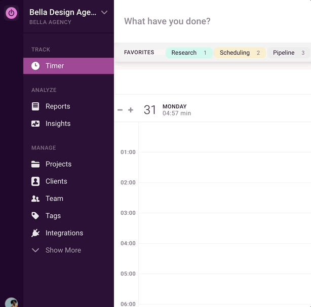 Workspaces: Everything you do in Toggl Track gets allocated to a Workspace: time entries, projects, clients, and tags. Each workspace belongs to an organization. Multiple workspaces per Organization are available for Enterprise pricing only.