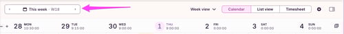 To see your time entries in Calendar view, click on the Week View button and you can choose between: 5-day view (this hides weekends), day view, or week view.