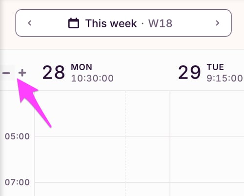 Important: You can only see time entries up to 90 days in the past in Calendar-view. To see time entries prior to that, please use Reports.