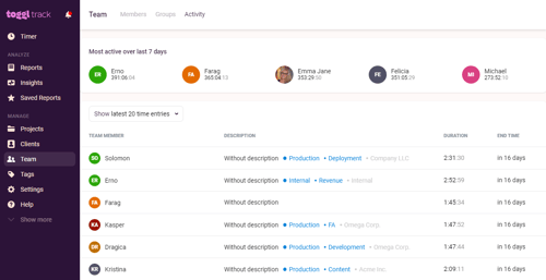 Admins can review the Most Active users and Team Activity by User on the Team Activity screen. Non-admins can only see this page if its visibility setting on the Workspace Settings page is set to everyone.
